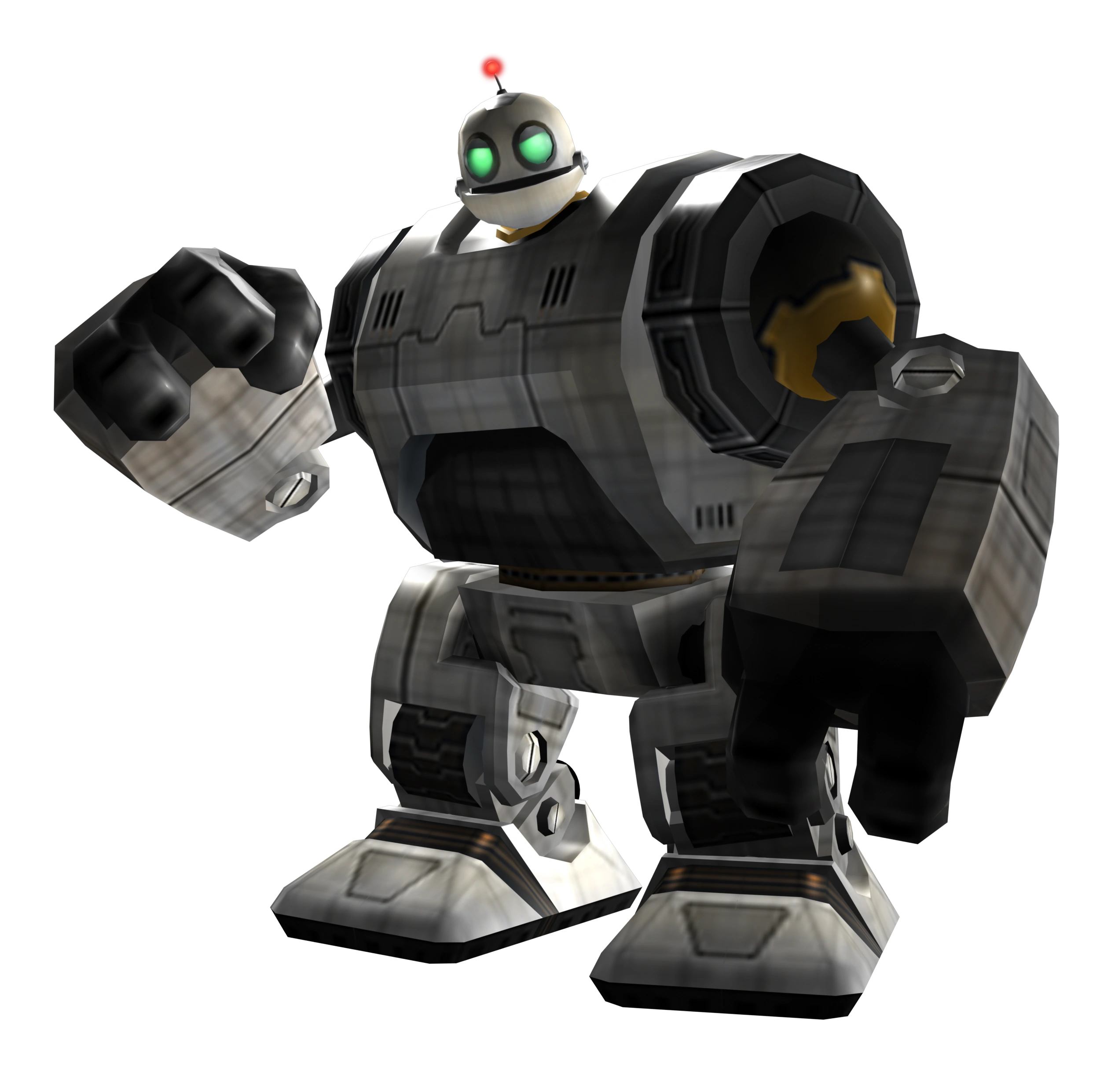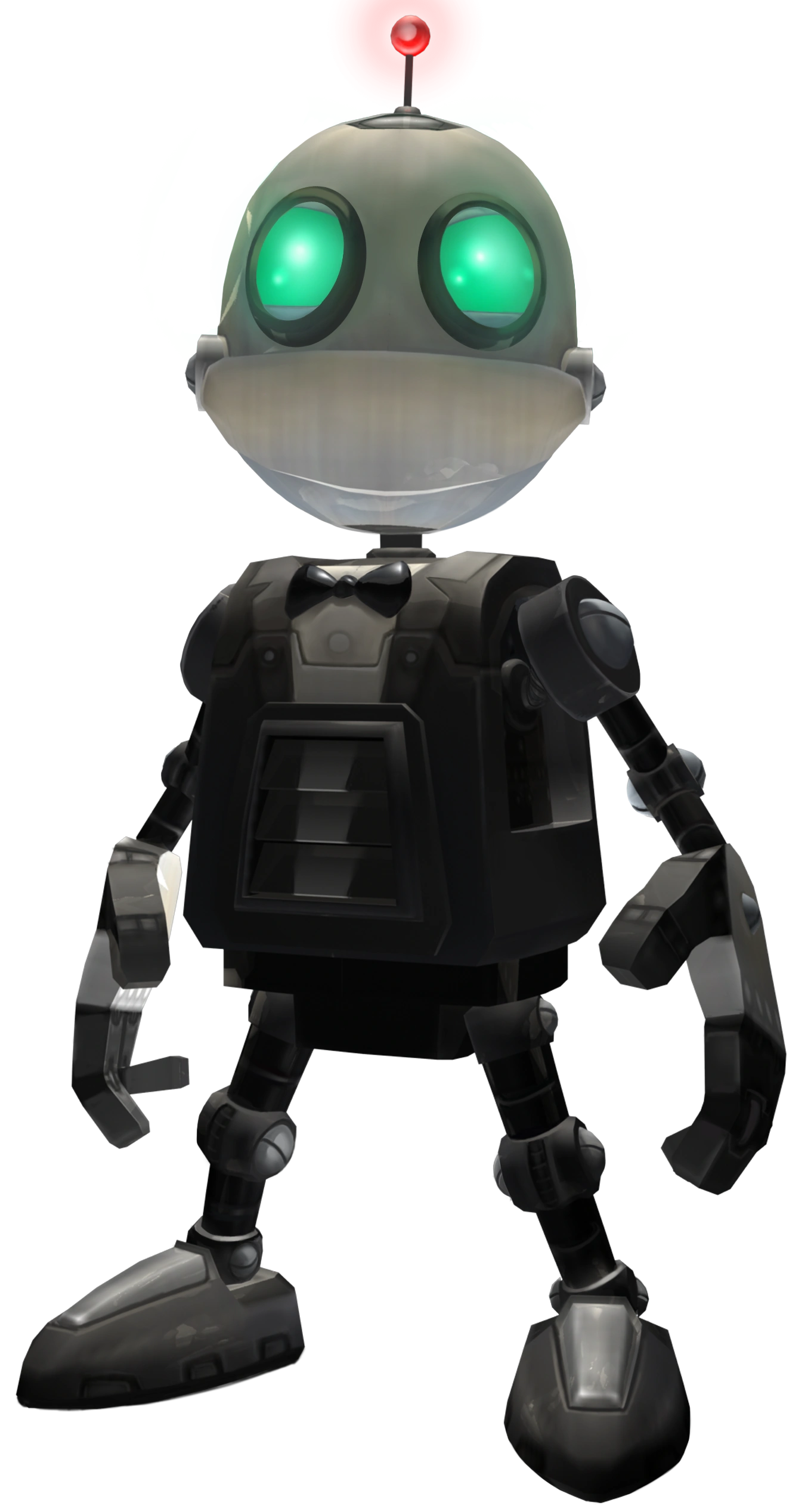 Clank, also known as XJ-0461, is a very small, but intelligent, robot. He is almost always on Ratchet's back in combat (usually to assist him in various things like gliding) and he can control Gadgetbots with his robotic mind. In additon, he has his own show called Secret Agent Clank (which is also the name of his self-starring game).
