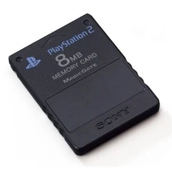 A Memory Card was a small 'card' that was manually inserted into the front of a PlayStation and a PlayStation 2 to record data saved from games. They were handy, but without one, a game would be pretty much useless to play, especially as PS1s and PS2s came without them. PS1 Memory cards were quite squarish and were white, PS2 memory cards were black and not quite as squarish.
